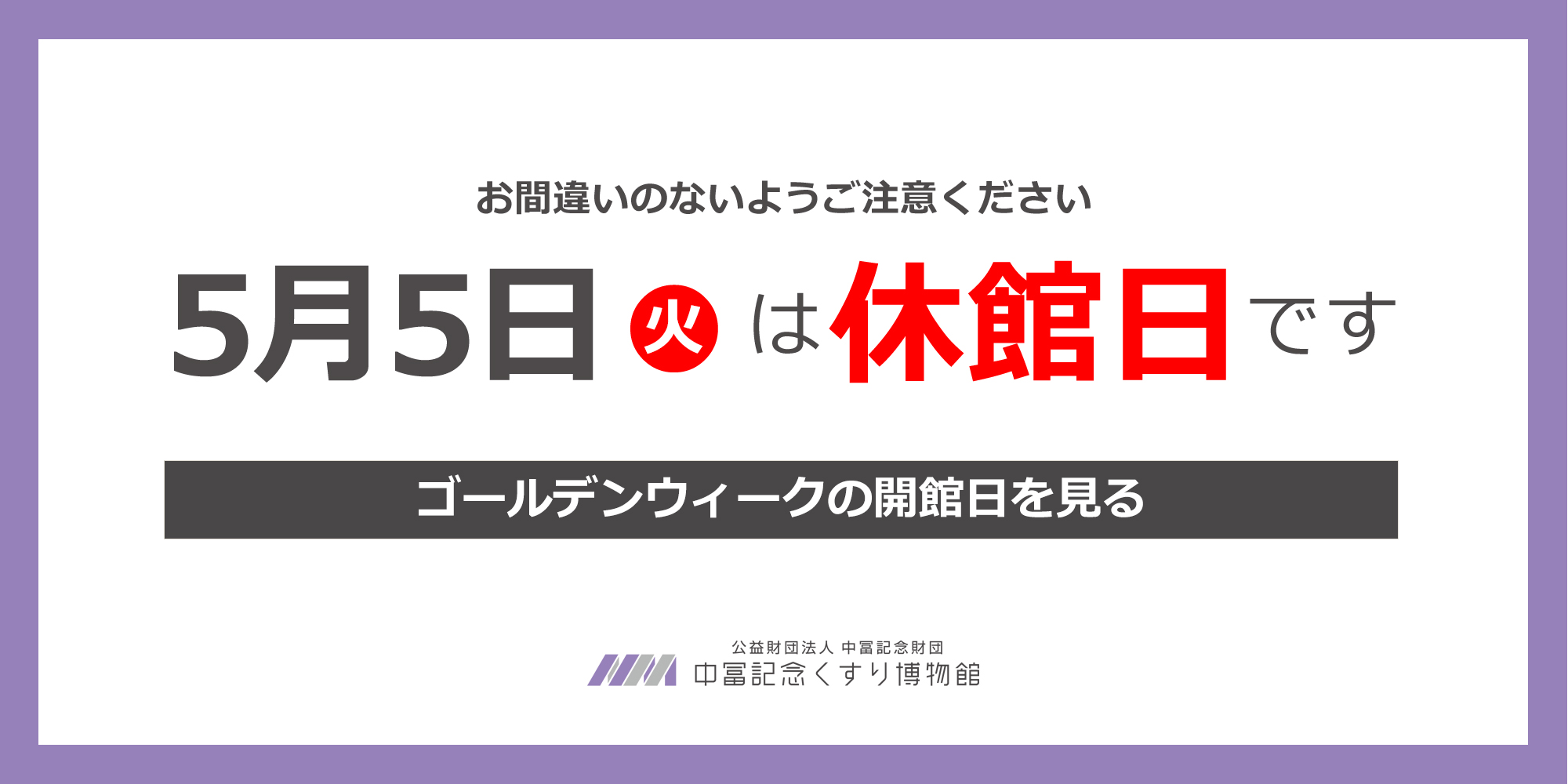 【5月5日(火・祝)は休館】ゴールデンウィークの開館日について